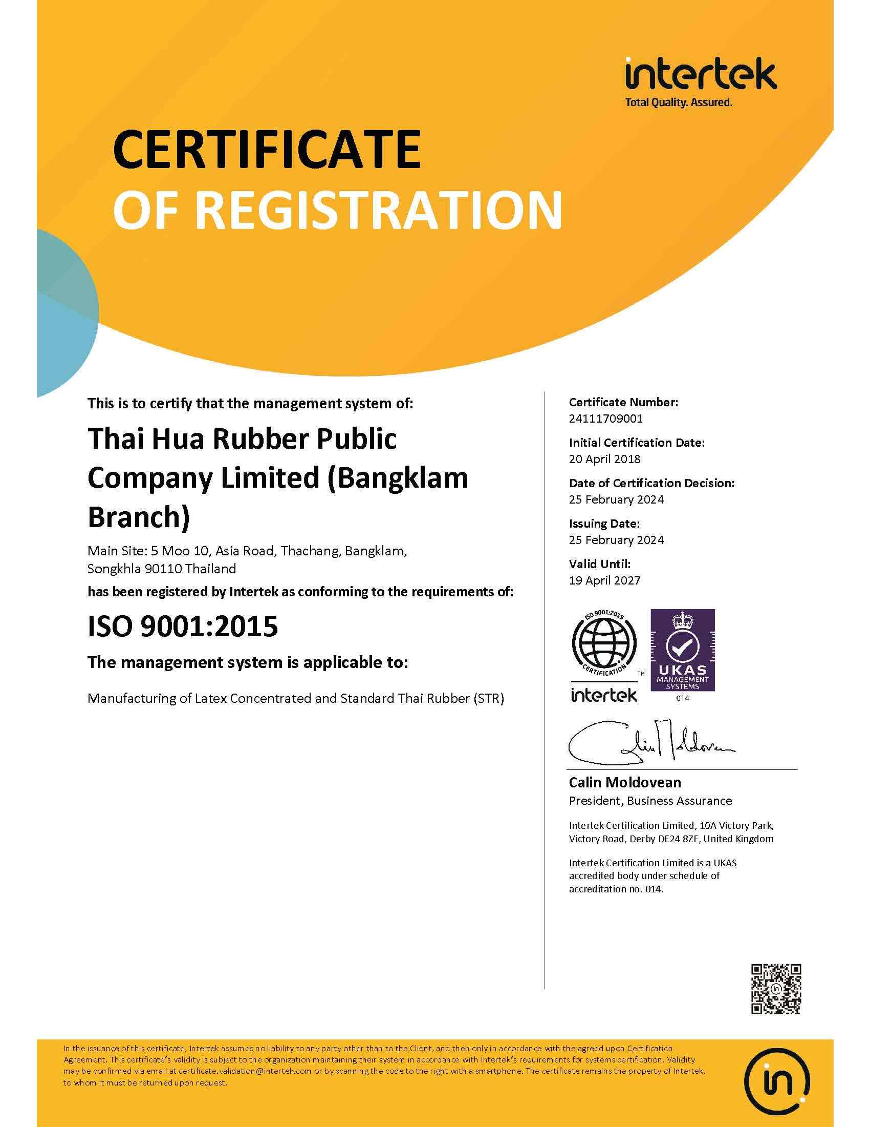 | STR | Bangklum(ISO 9001:2015) | AY | 19/04/2027 | View | |