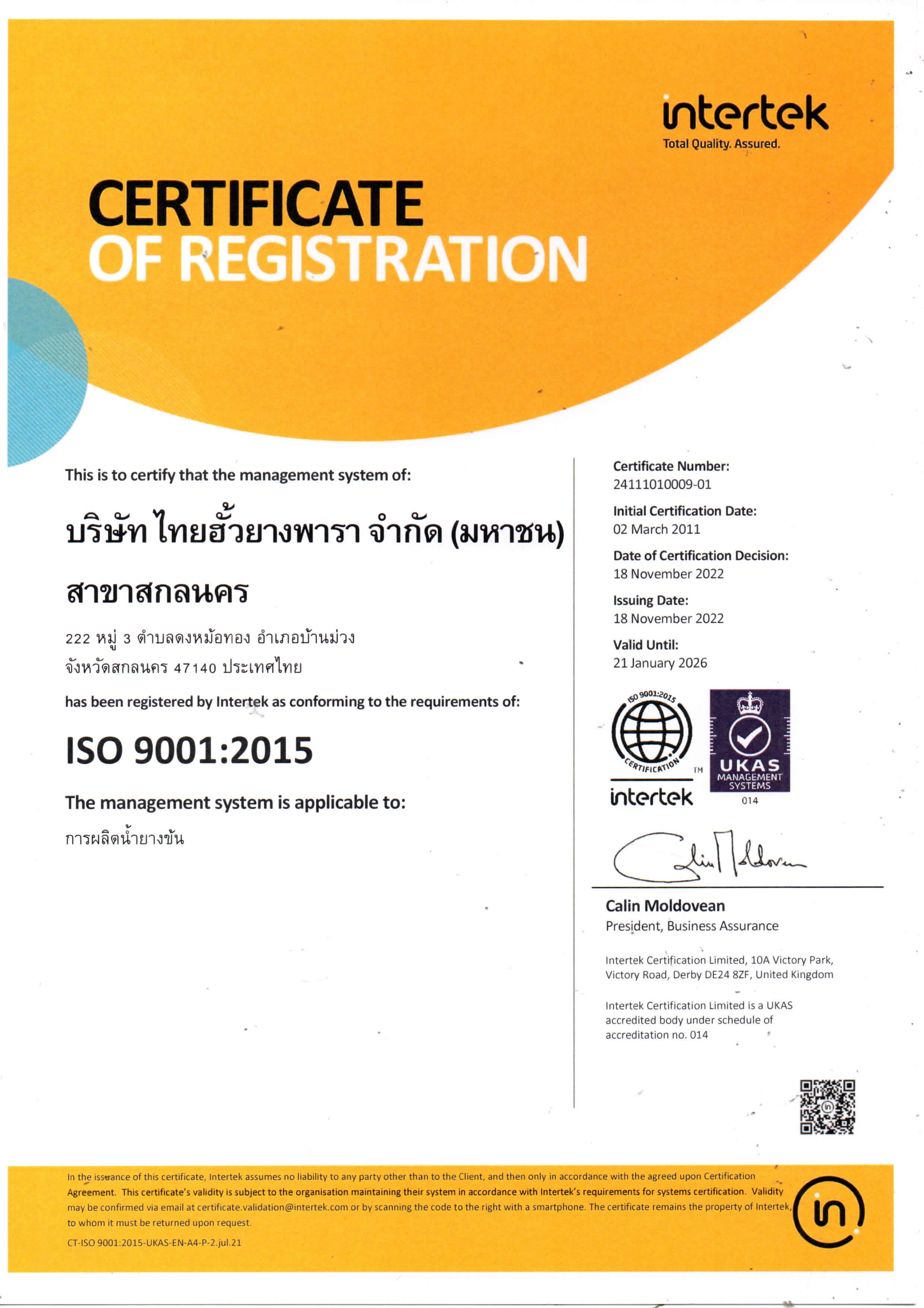 | STR | Udon Thani(ISO 9001:2015) | CR | 26/02/2028 | View | |