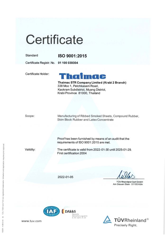 | LAT | ThaiMac (Krabi 2) Latex (ISO 9001:2015) | KBL | 29/01/2025 | View | View |