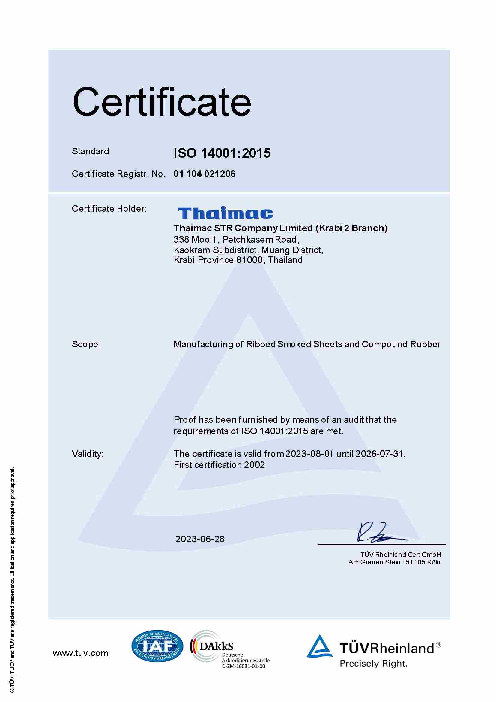| RSS | ThaiMac (Krabi 2)(ISO 14001:2015) | KBL | 31/07/2026 | View | View |