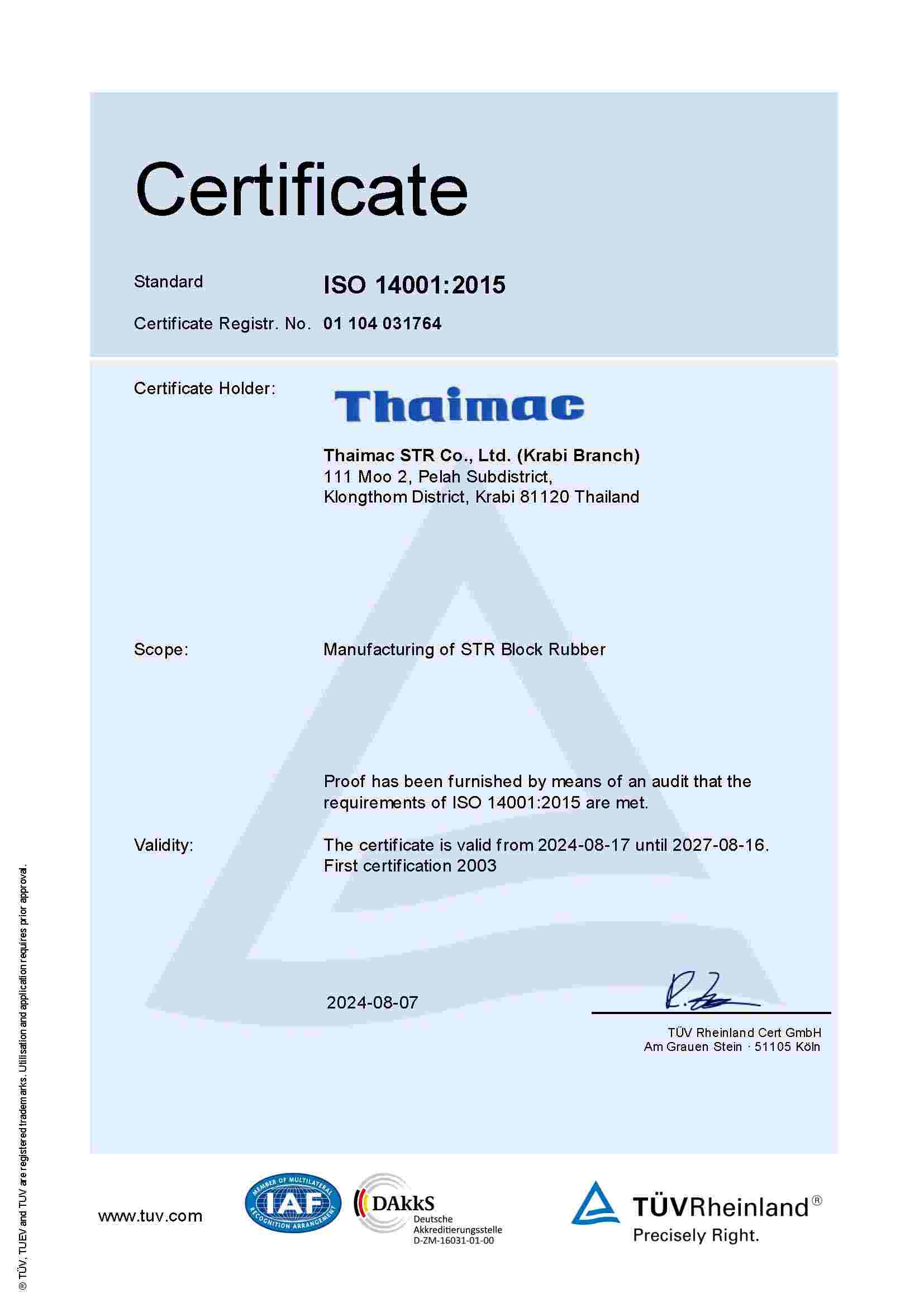 | STR | ThaiMac(ISO 14001:2015) | BS | 16/08/2027 | View | View |
