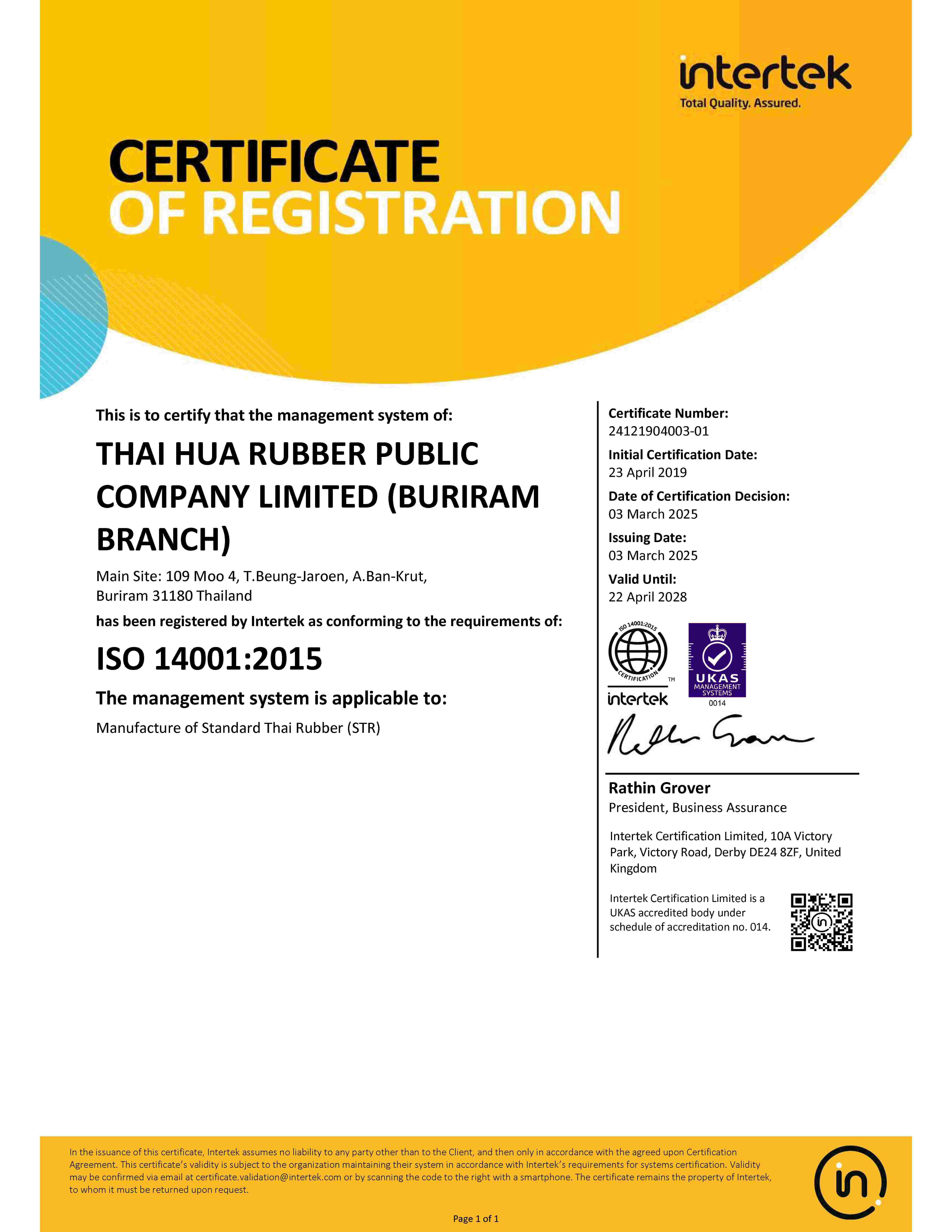 | STR | Bureeram(ISO 14001:2015) | CL | 22/04/2028 | View |